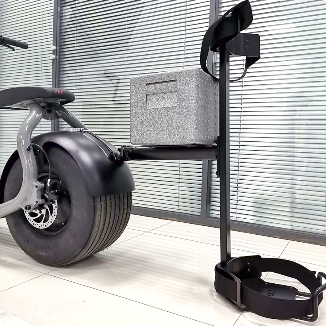 A golf bag rack that attaches to the KaaSpeed K1S scooter as an accessory. Max Load 45lb. Cooler included.