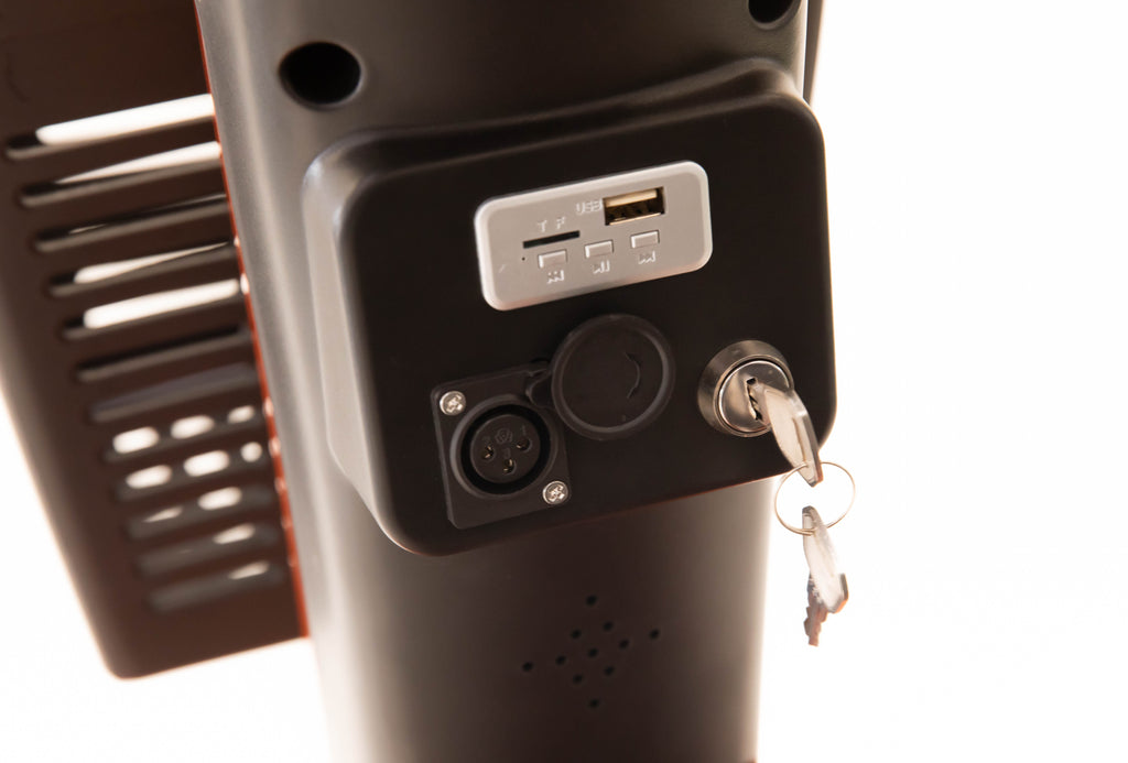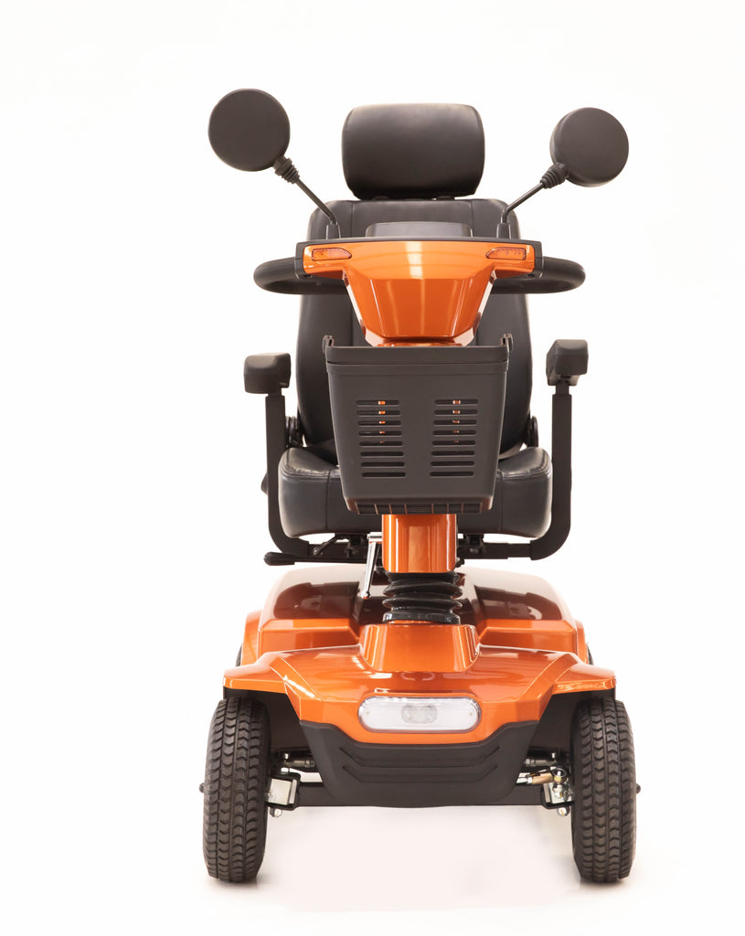 A great size as a runabout scooter. This well designed scooter has the latest motor control system giving smooth and accurate power. For a smaller unit it has plenty of power when needed. The modern design includes a digital screen with speedometer, odometer, battery indicator and bluetooth speaker system with a USB charger for your phone. The durable shopping basket easily clips on and off for a convenient shopping experience.