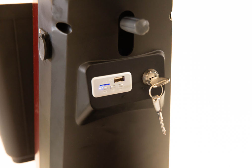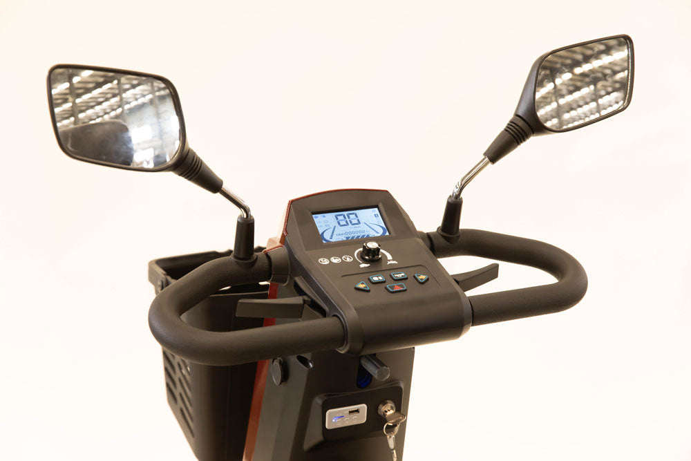 A new design with town and country capability, bluetooth speaker, USB port and phone holder built in. This is a modern sporty Mobility scooter designed to truly keep you independent.