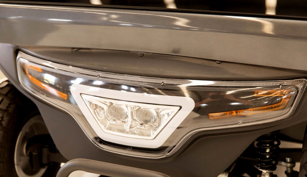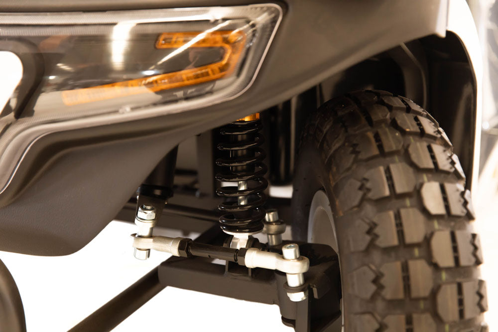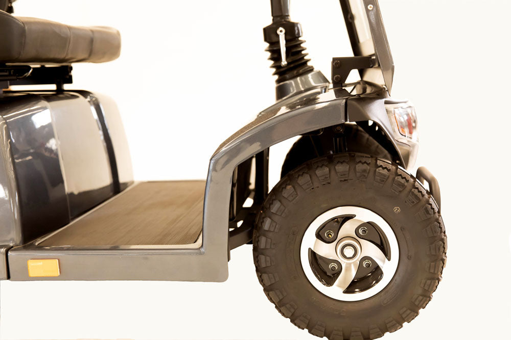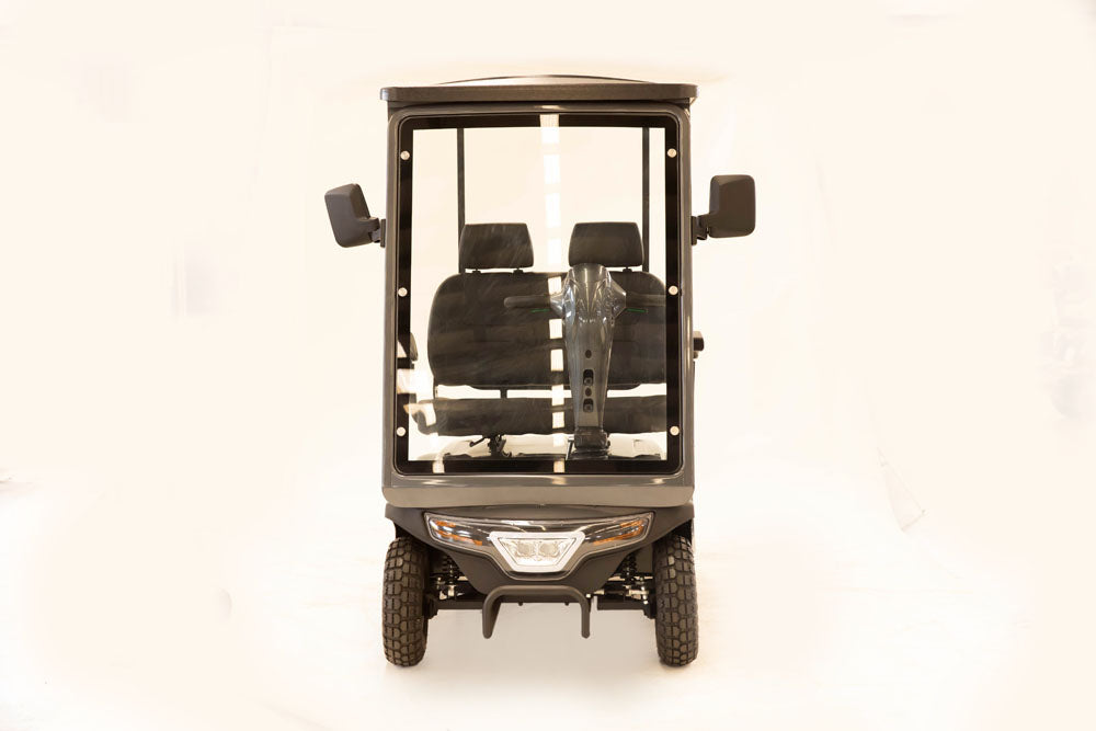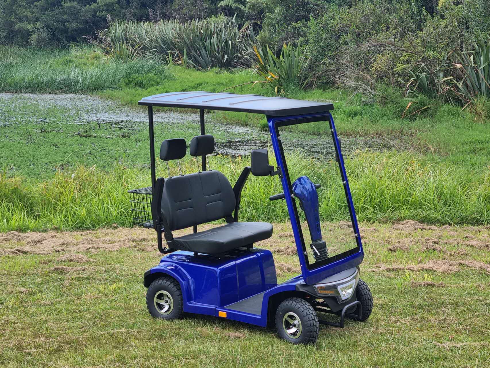 Large quality built double seat scooter with offset steering and hard canopy with tempered glass windscreen.