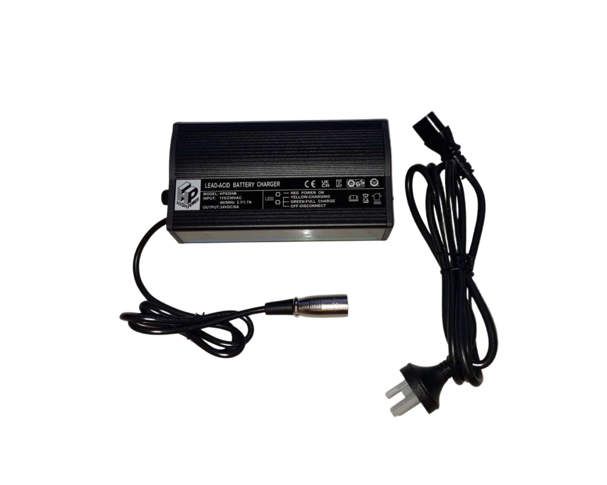 This is a 24V charger for lead acid batteries used in most mobility scooters. 6A version ideal for most medium and large scooters.