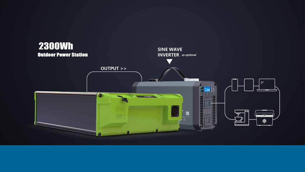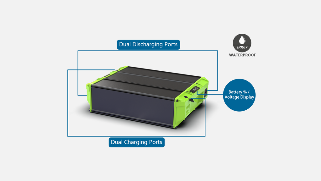 Removable Battery: Thanks to its massive-capacity 2400Wh battery and excellent waterproof capability, along with the handles at both ends of the battery for portability, users can choose to add an inverter to transform the battery into a outdoor power station.