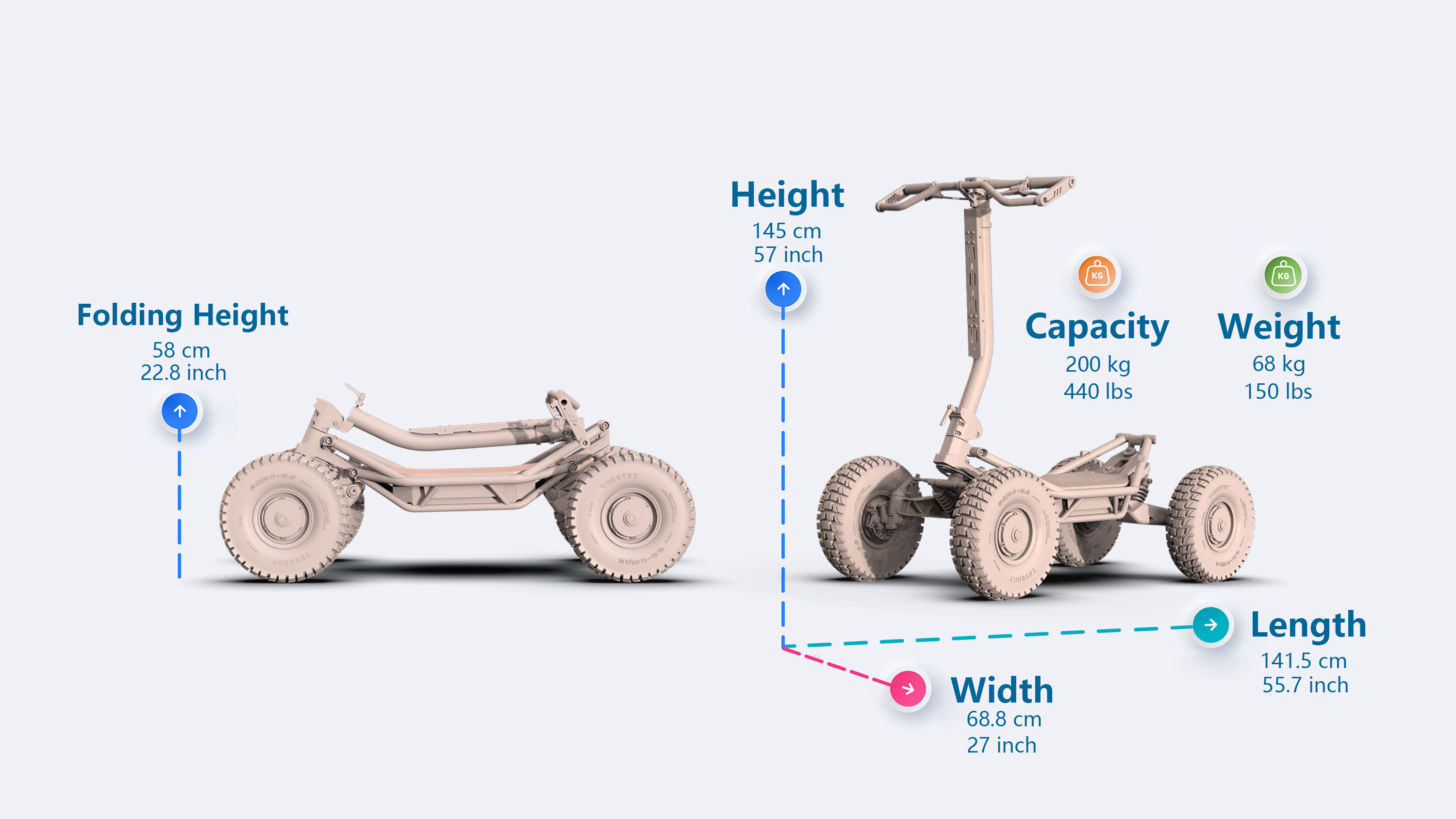 The Veehop 4WD E-Scooter/ Foldable ATV, a revolutionary off-road vehicle designed for thrill-seekers and adventure enthusiasts. Combining the convenience of an electric scooter with the ruggedness of an ATV, this cutting-edge vehicle delivers an unparalleled riding experience.