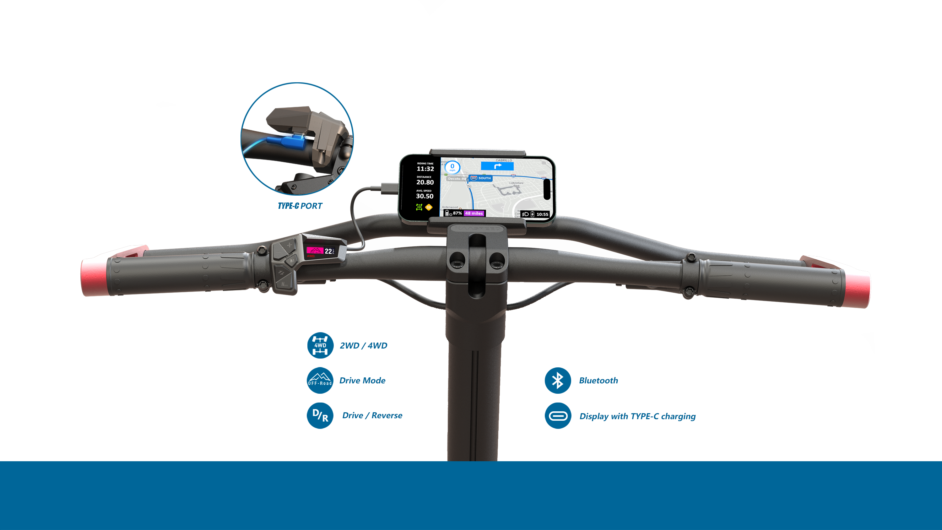 Rugged Frame System: Crafted from a combination of carbon steel and 6061 aluminium, the Veehop offers durability without compromising on agility. Experience a nimble and responsive ride, making it ideal for recreational adventures and rugged work environments alike.